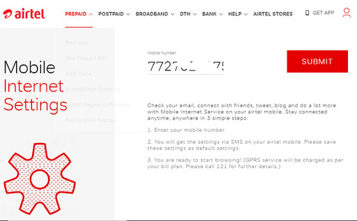 एयरटेल अपने उपभोक्ताओं को ऑनलाइन मोबाइल इंटरनेट सेटिंग प्राप्त करने की सुविधा प्रदान करता है, इसके लिए आप https://www.airtel.in/mobile-internet-setting पर विजिट करें फिर Enter Mobile Number की जगह अपना एयरटेल मोबाइल नंबर टाइप करें, मोबाइल नंबर टाइप करने के बाद Submit Button पर क्लिक करें, उसके बाद SMS के द्वारा इंटरनेट सेटिंग आप प्राप्त होगी, उसको default Apn Setting के रूप में सेव करे।